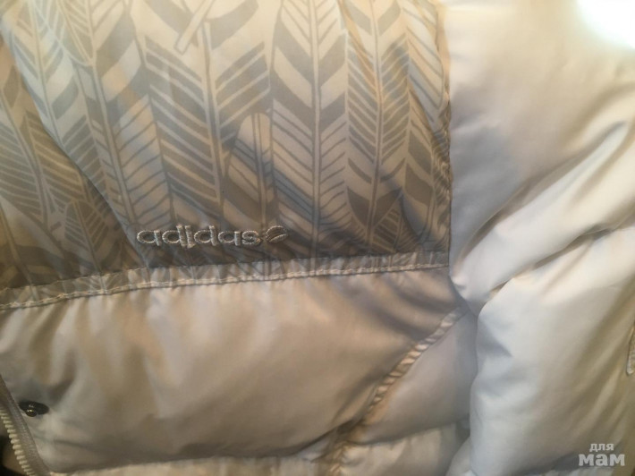 нужна химчистка, машинная стирка разрешена. Куртка белая, Адидас, внутри пух. Отдам даром при покупке любых других моих лотов от 500 рублей
