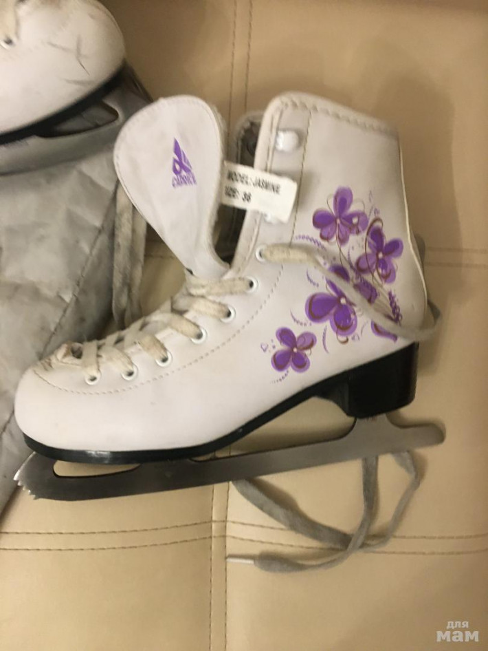 Б/у сезон не часто, утеплённые, качественные коньки для девочки, по стельке 23 см. Маркировка на лезвии 35/36, на ботинке на ярлыке 36