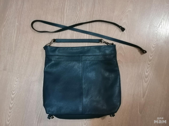 Сумка-рюкзак натуральная кожа. Италия. Новая, не носила. Сумка-трансформер, можно сделать шоппером, можно носить на длинном ремне, можно сделать рюкзаком. Сумка застегивается на молнию, сзади карман на молнии, внутри карман на молнии и ещё 2 кармана. Цвет очень красивый изумрудно-бирюзовый, равномерный (на фото отсвечивает). В реальности цвет немного светлее, чем на фото. Замеры на фото. С почтой 3000 руб.