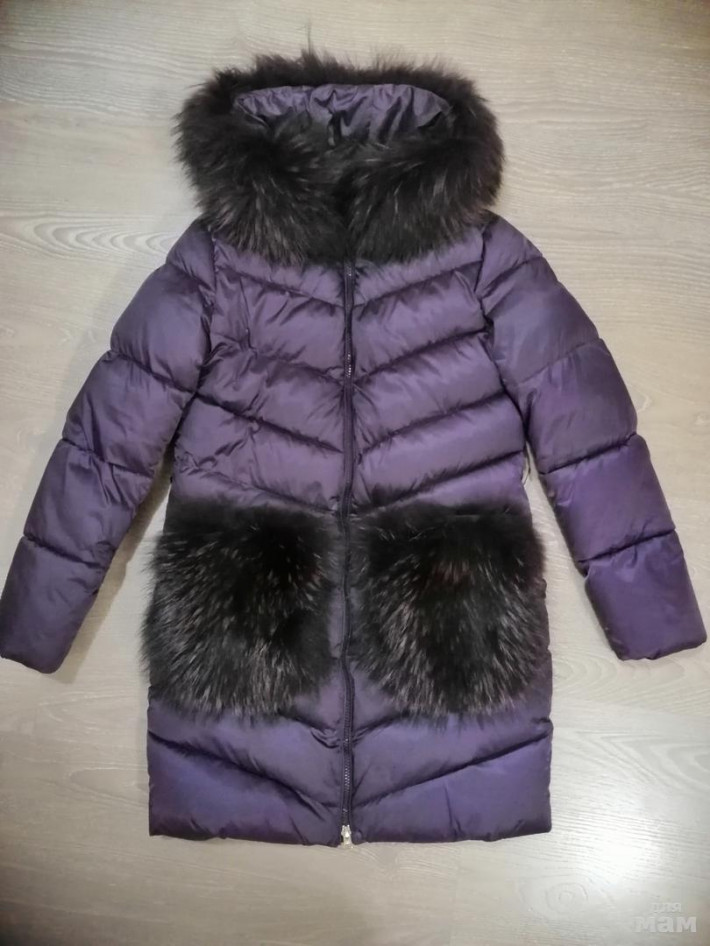 В идеальнейшем состоянии, хоть бирку вешай! Марка Kiwiland зима (ооочень тёплое) р.152, маломерит немного, лучше на р.146. Мех на капюшоне и карманах густой, пушистый, однородной, на карманах мех отстегивается (на молнии).Цвет шикарнейший, глубокий, на фото отсвечивает.