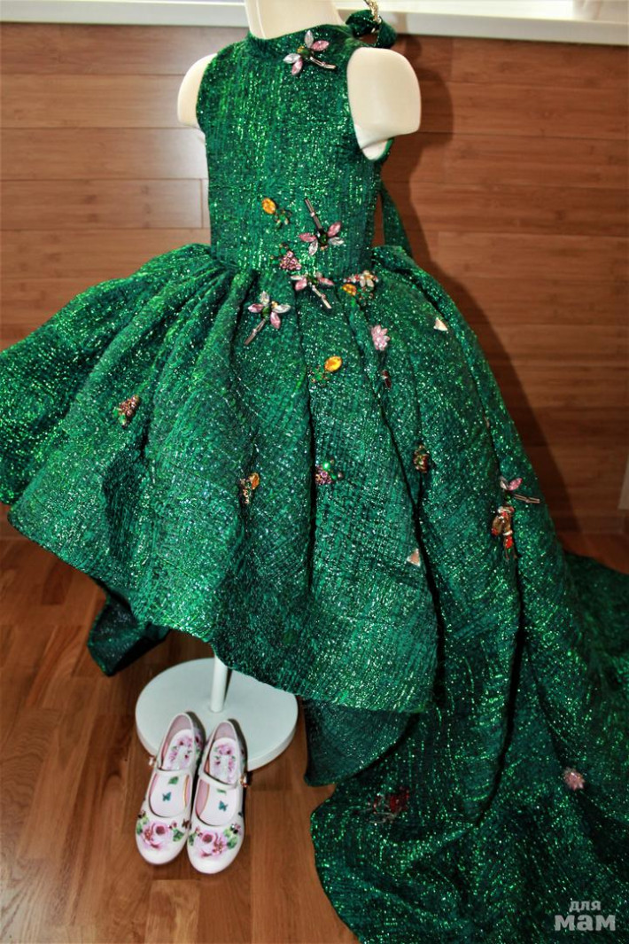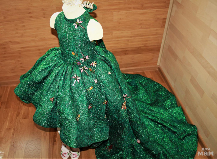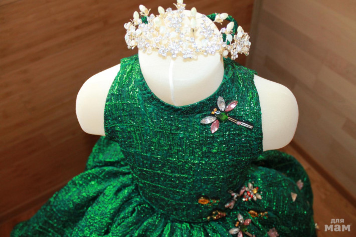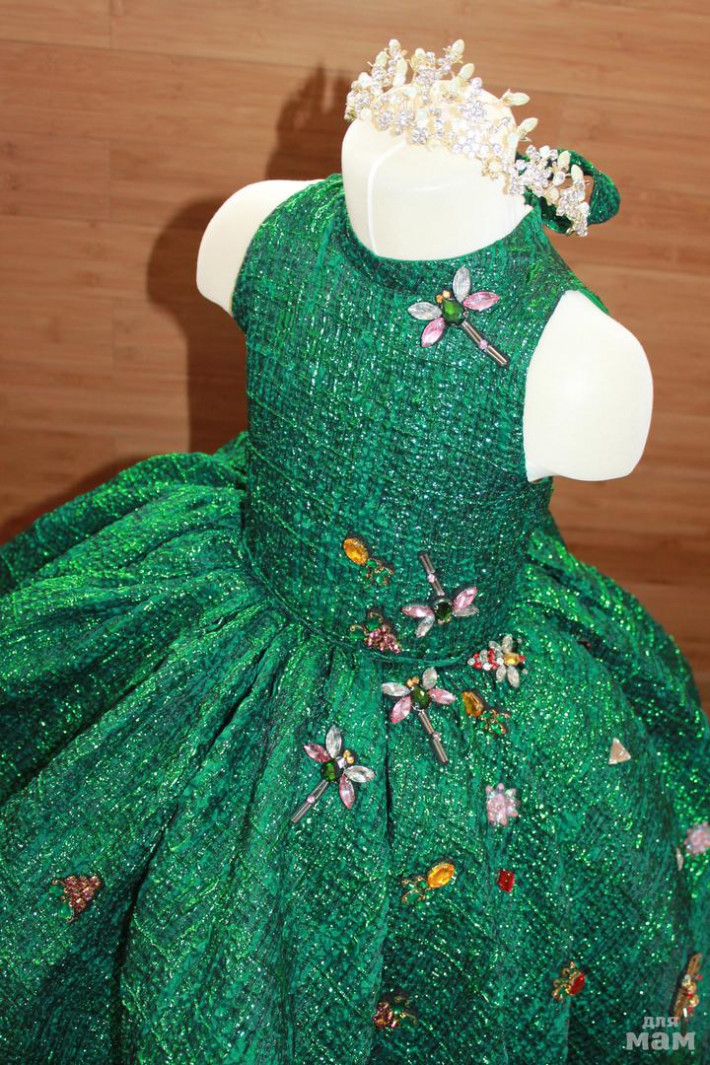 Цвет неповторимый - насыщенный изумруд. Украшения из камней, бант вверху на спинке.