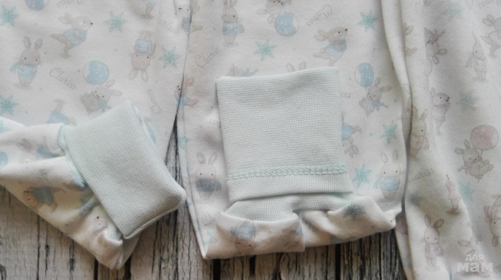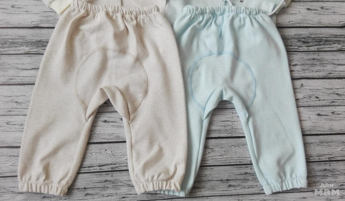 Широкая резинка на поясе для большего комфорта малыша, мягко фиксирует ползунки, не передавливая нежный животик младенца. Штанишки с мягкими трикотажными манжетиками с перекидом. Манжеты позволяют закрыть пяточки малыша и легко превратить штанишки в ползунки.
