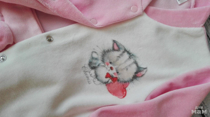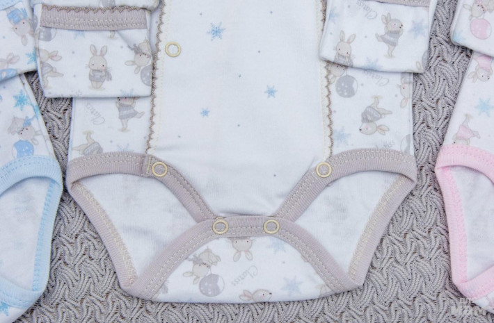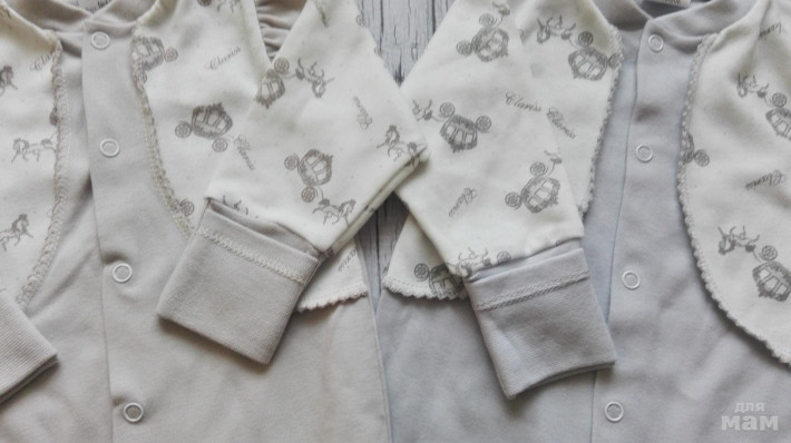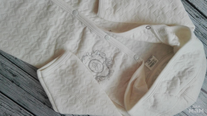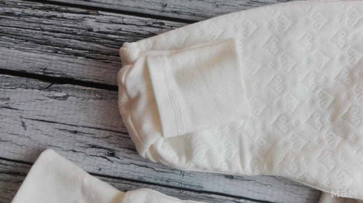Модель выполнена с длинным рукавами с перекидом, который дает возможность превратить рукава в антицарапки. Застежка спереди на кнопках по всей длине с переходом на ножки для удобства смены подгузника и комфортного переодевания.