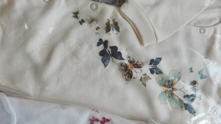 Белый( розовые бабочки), шампань (синие бабьочки), р. 62 (62-68)