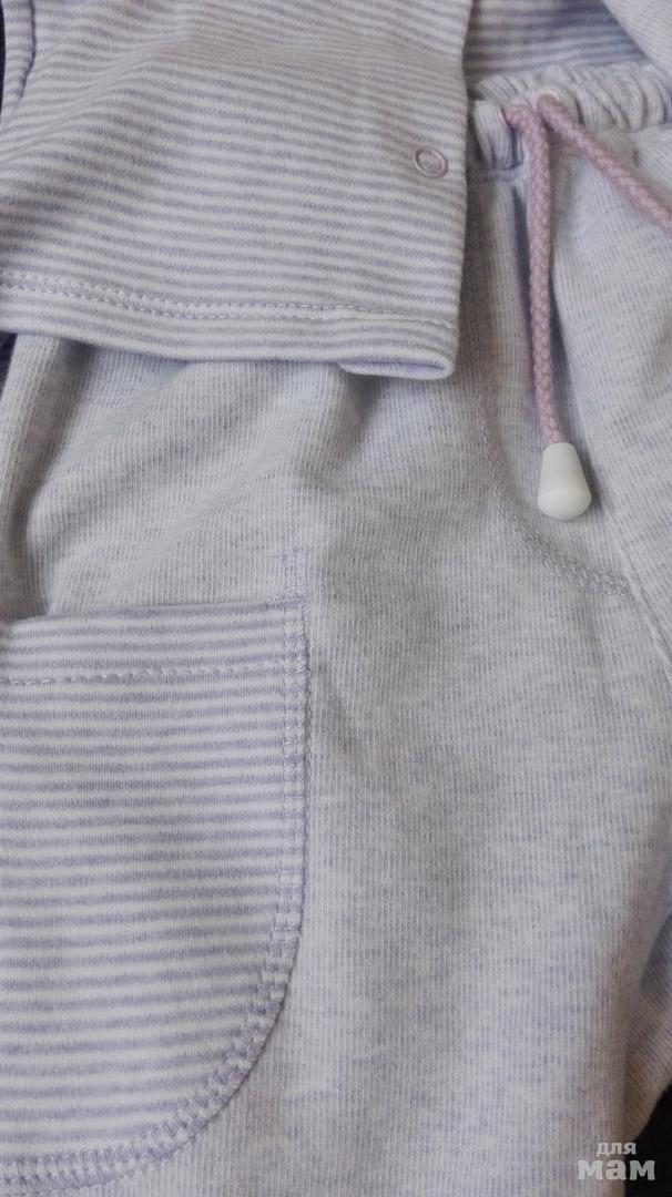 Застёжка на кнопки. Ткань: меланж. Штанишки с мягкими трикотажными манжетиками с перекидом.