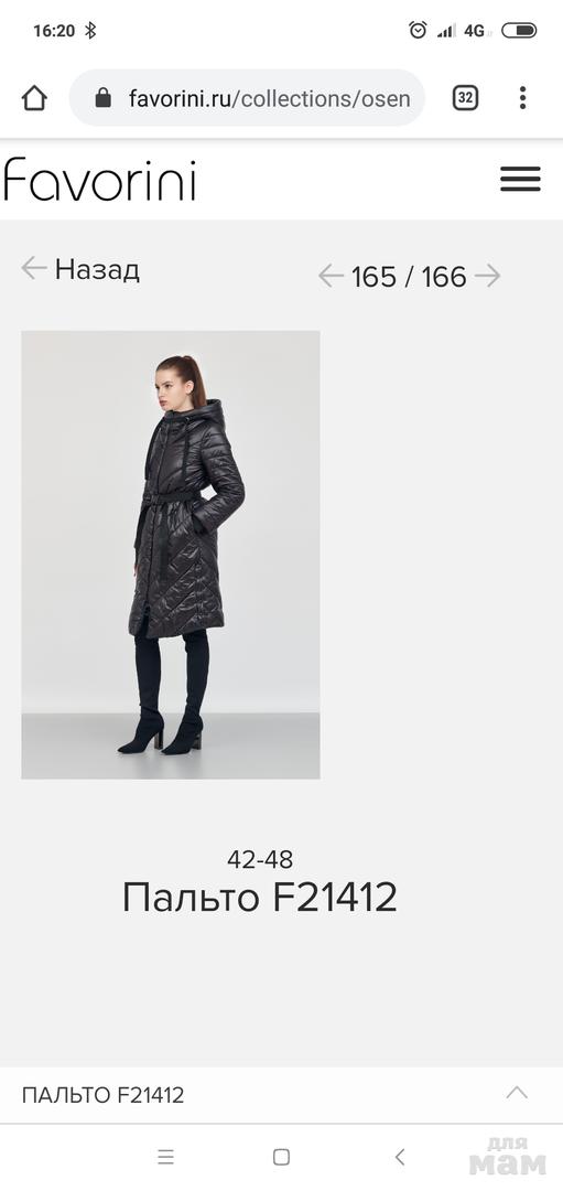новое пальто Фа*ворини арт 21412 цвет хаки размер 44, не пошло по росту, вернее я не ношу такие длинные вещи, у меня 160, а рост модели явно больше 176см. Получилось почти до щиколоток.