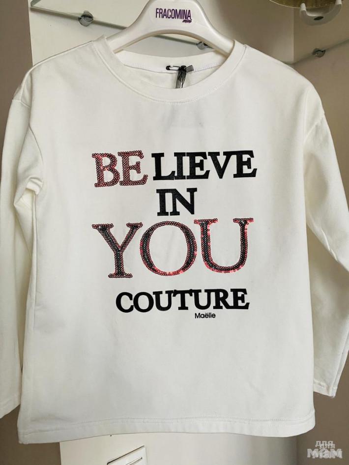 Отличнейшее качество, плотный трикотаж, пайетки. Очень любим и часто носим эту марку, абсолютно не меняется после стирок