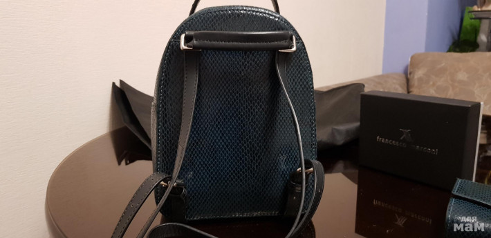 Рюкзачок невесомый, удобного размера. Высота (без учёта ручки) 25 см, ширина 19. Внутри на подкладе. Один большой отдел и два маленьких, один из них застегивается на молнию. Внешний карман на очень удобном замочке. В очень-очень хорошем состоянии. Следы носки только на ручке. При желании можно отдать в мастерскую пройтись жидкой кожей и будет как новая!