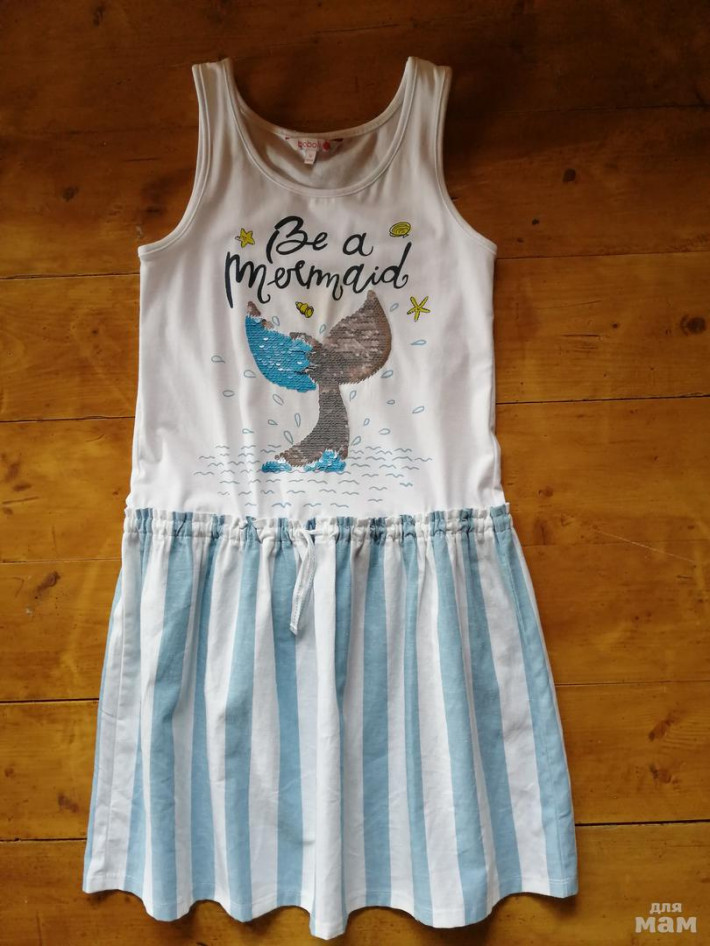 Новое, ни разу не надели, но бирки срезаны. Замеры общая длина 81 см, пог 35 см. Украшено двусторонними пайетками.