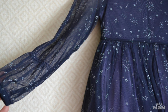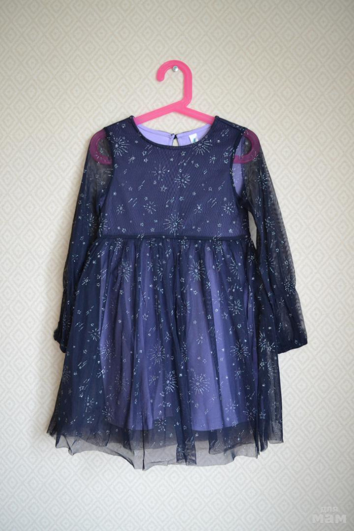 Платье Acoola р.122, чуть маломерит, подойдет на рост примерно от 112 см. Одето 3 раза. В идеальном состоянии. Внутри трикотажная подкладка, снежинки из блесток. Блестки переливаются красиво при иск. освещении. 500р.