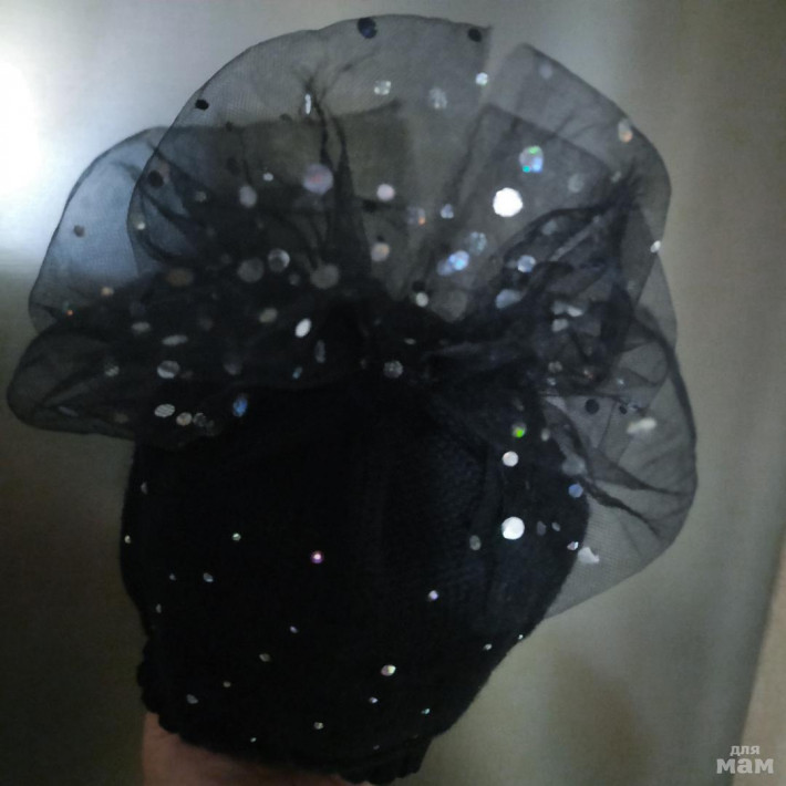 Декорирована хрустальными радужными стразами и пышным декоративным бантом из фатина с радужными блестками