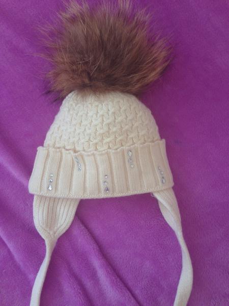 Продам шапку зимнюю на малышку 6-9 месяцев, цвет ванильный. С подкладом. Натуральный большой помпон, съемный.