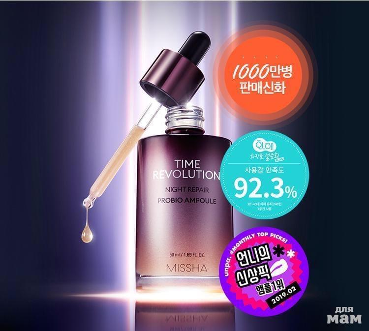 высокоэффективная ночная ампульная сыворотка Missha Time Revolution Night Repair Probio Ampoule