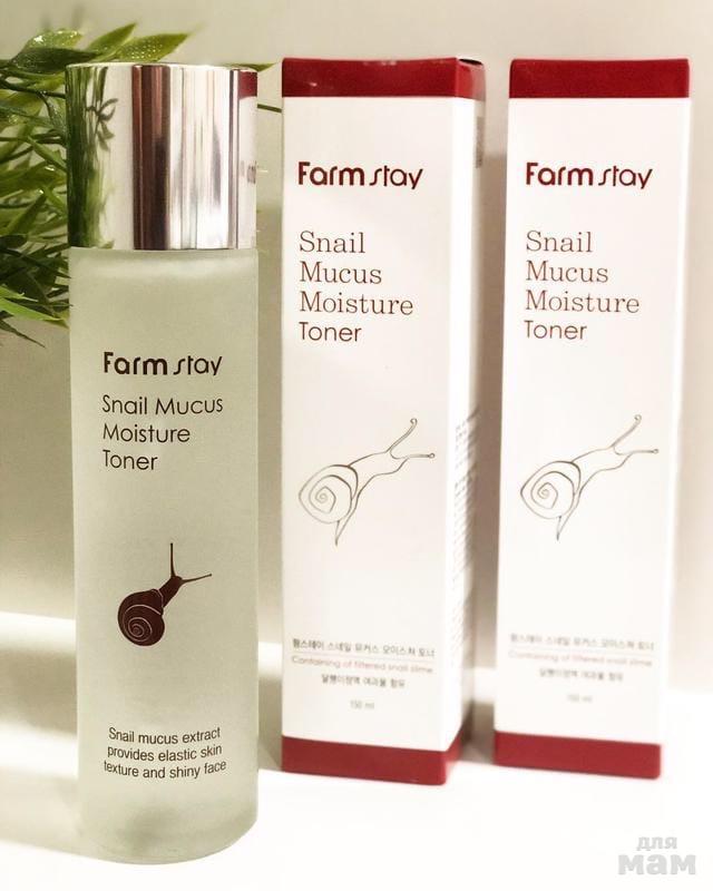 FarmStay Snail Mucus Moisture Toner – увлажняющий тоник с экстрактом слизи улитки завершает процесс очищения кожи и готовит ее к усвоению средств ежедневного ухода. Средство обеспечивает кожу необходимой влагой, что очень важно после умывания, чтобы предупредить обезвоживание, появление стянутости и шелушений.