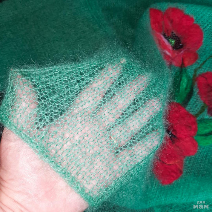 Связана вручную в 1 ниточку ( метраж 1000 м/100 гр), спицы N5.