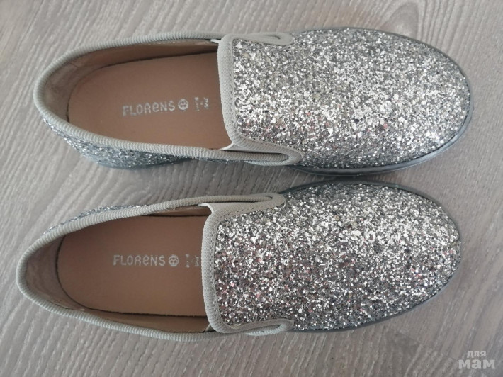 Новые. Подойдут на нормальную и широкую ступню. Марка Florens р.34 стелька 22,5 см. На узкую ногу не подойдут. Глитер, внутри кожа.