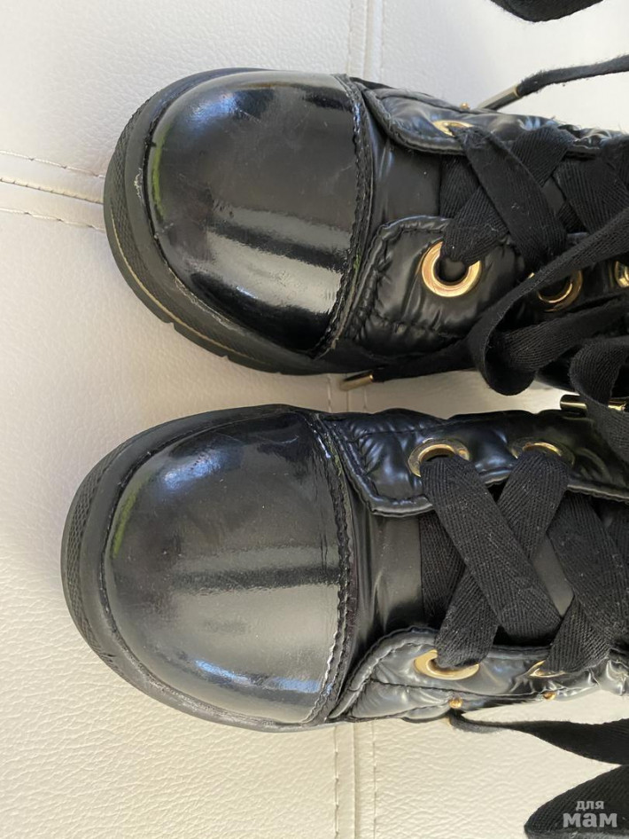 Сапожки в хорошем состоянии. Одевали мало . Имеются белесости сгибах ( все исправляется спреем для обуви , будут как новые) и небольшие потертости по краям липучек . ПРОДАНО