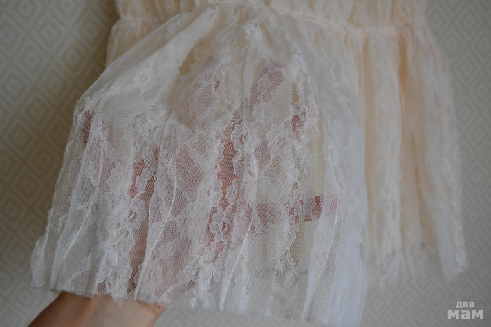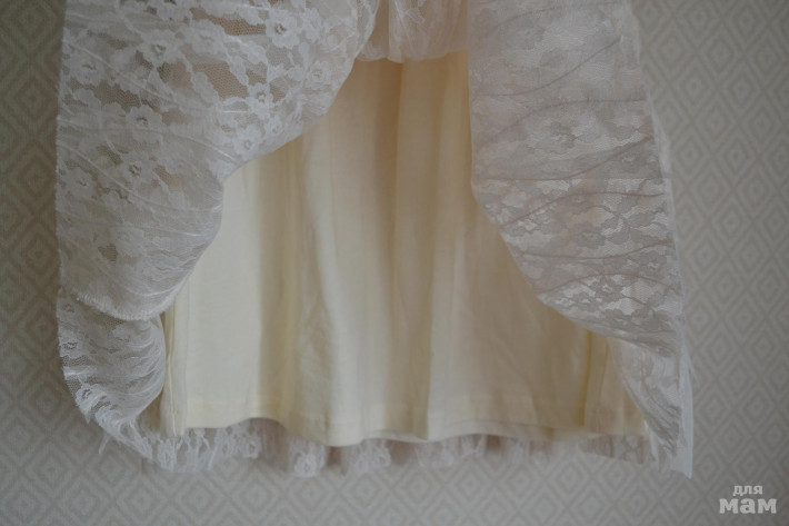 Показалось, что маломерит. Дочке на рост 120см. по длине без запаса. До 122см. оно идет примерно. Цвет экрю(не белое). На хлопковой подкладке, верхнее кружево и сеточка очень мягкие. Фото на модели могу сделать, по запросу! Цена 1500р. в феврале цена 1000р