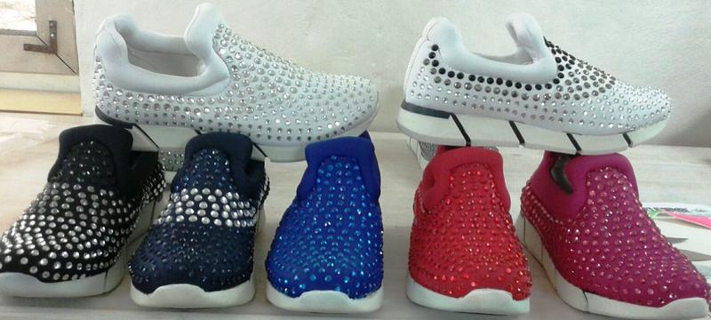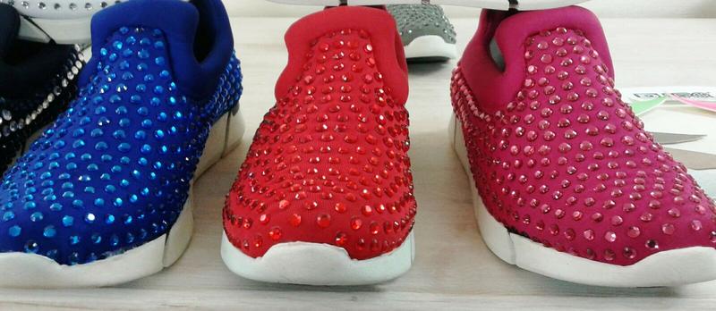 слева направо: ЧЕРНЫЙ с синими стразами (язычок), ЧЕРНЫЙ с белыми стразами (язычок), РОЗОВЫЕ, СИНИЕ