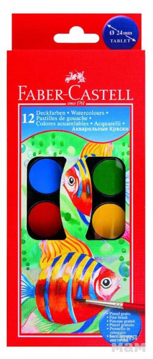Краски акварельные Faber-Castell Watercolours, 12 цв., с кистью. Цена 80 руб + 15 % орг