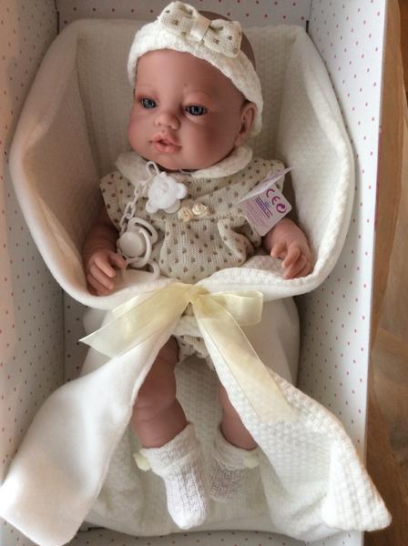 Немного смуглый как большинство испанских кукол. Фото делала при дневном свете, стараясь максимально точно показать оттенок винила.