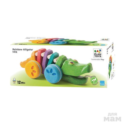 Деревянная каталка на верёвочке Разноцветный крокодил от производителя деревянных игрушек Plan Toys порадует малышей веселыми движениями и станет постоянным спутником во время прогулок.