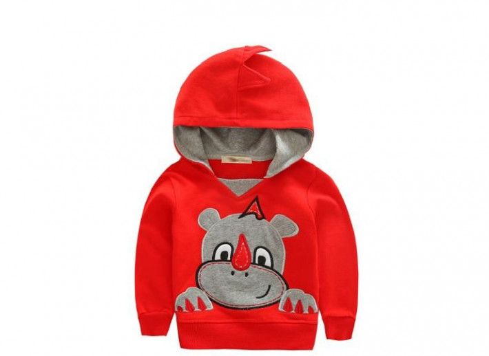Красная толстовка для мальчика с аппликацией динозаврика, а может быть дракончика.