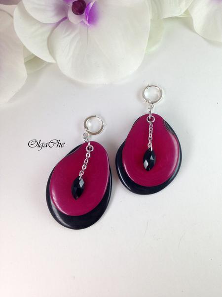 Серьги из лепестков ореха Тагуа с кристаллами Сваровски.