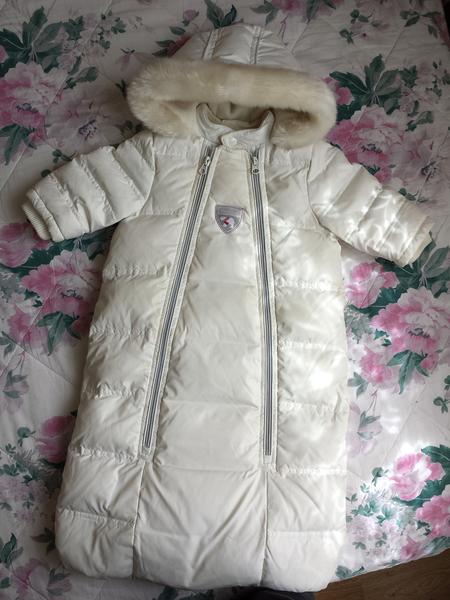 Продаю зимний пуховый комбинезон фирмы Chicco, б/у 3 месяца, размер 6-9 месяцев, можно использовать с рождения. Внутри флисовый подклад. Очень тёплый! Сзади есть прорези для ремней. Состояние отличное. Цвет молочно-белый, пойдёт как мальчику, так и девочке.
