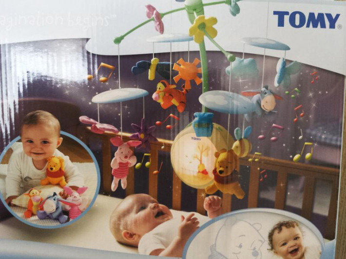 Продам мобиль фирмы Tomy, редкой комплектации - все четыре героя: Винни-пух, Пятачок, Тигра, ослик Иа-Иа. Мобиль очень удобный, три мелодии, ночник, громкость.
