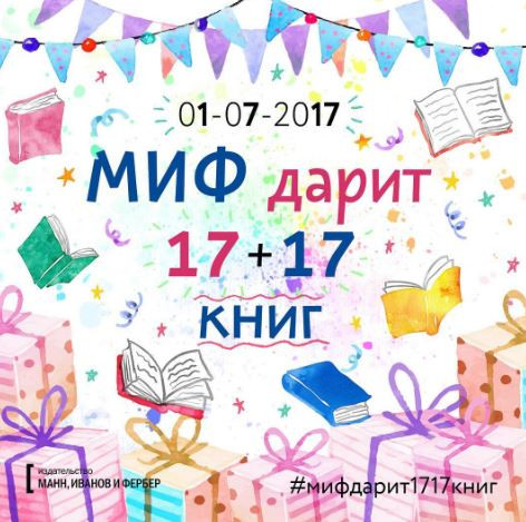 Издательство МИФ объявило розыгрыш 17 + 17 бумажных книг: два победителя получат по комплекту из 17 книг на выбор редакции. Чтобы участвовать, выкладывайте у себя в профиле в Instagram