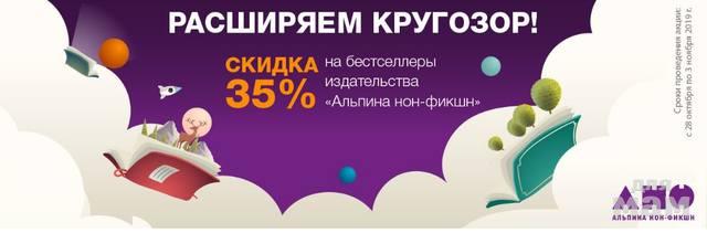 Скидка 35% на товары в наличии из разделов «Художественная литература» и «Нехудожественная литература» с 31 октября по 2 ноября 2019 (промокод ОКТЯБРЬ-35)