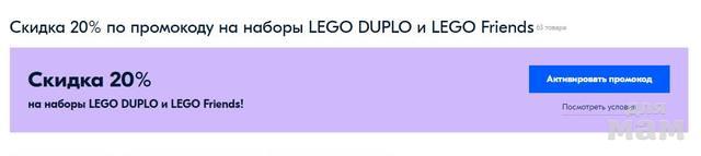 LEGOPROMO - скидка 20% по промокоду на наборы LEGO DUPLO и LEGO Friends , по 04.10.2019