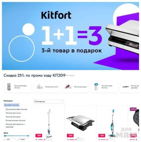 1+1=3 на бытовую технику Kitfort по 24.09.2019