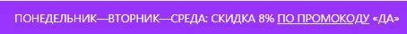 ПОНЕДЕЛЬНИК—ВТОРНИК—СРЕДА: СКИДКА 8% ПО ПРОМОКОДУ «ДА»