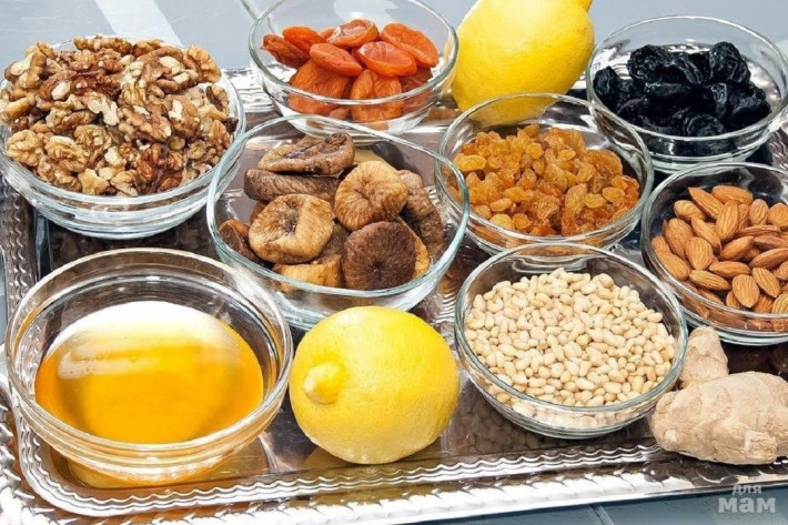 Мед хороший 🍯 уж сами раздобудете для такого дела + лимон 🍋 + имбирь 🍠 в магазине в свободном доступе + орешки и сухофрукты 🍑🍇 есть у нас в большом ассортименте в шикарном качестве !