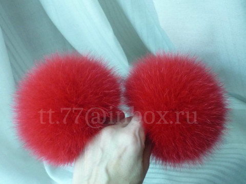 Меховые помпоны. Песец. Цвет красный.