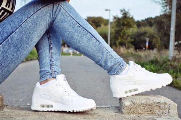 Кроссовки НАЙК АЙРМАКС 90 ЖЕНСКИЕ - натуральная кожа БЕЛЫЕ и ЧЕРНЫЕ