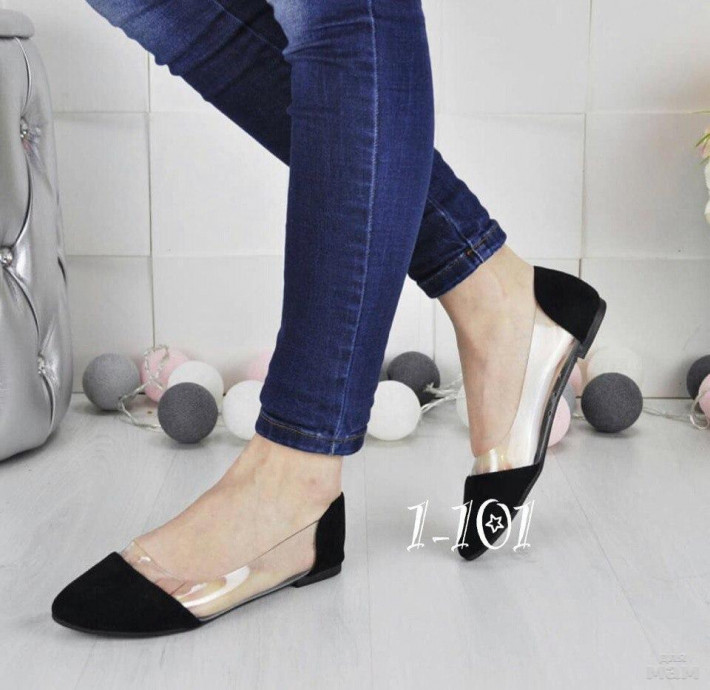 Балетки экозамша/силикон - 3 цвета синие/черные/бежевые