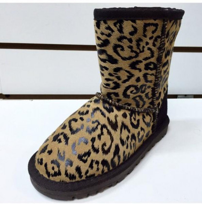 Угги натуральные леопард с пуговицей