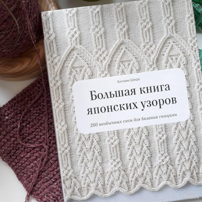 В прошлом году мы издали «Большую книгу японских узоров», внутри которой — 260 необычных схем для вязания спицами.