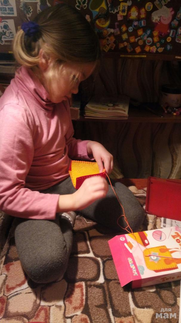 Вот и доросли мы до того чудесного возраста, когда можно учить ребёнка шить и вышивать. Сегодня я вышиваю сову, а дочка делает себе сумочку!