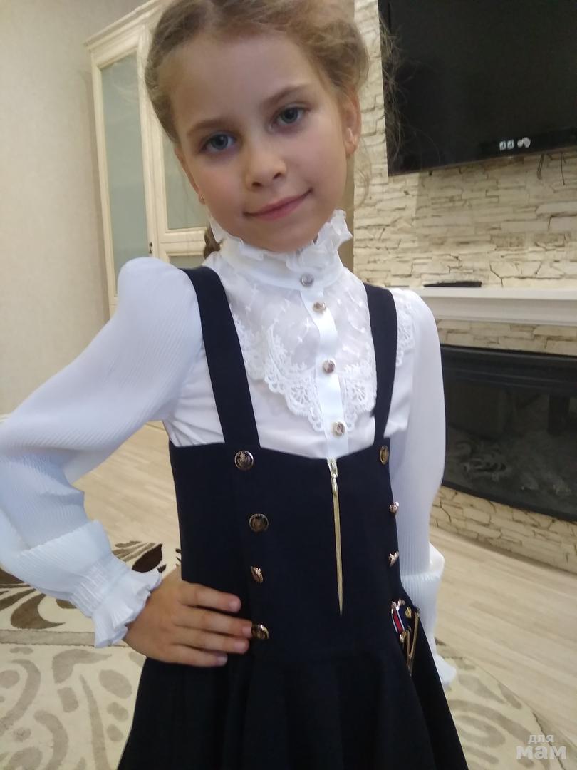 Спасибо большое за школьное платье ,оно шикарно ,на рост 128 сел хорошо размер 140 (мы с запасом брали немного )