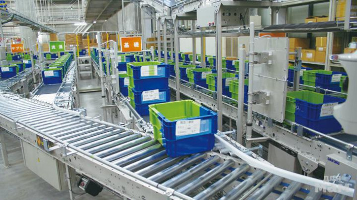Линия центрирования контейнеров. Контейнеры с товаром, укомплектованным по категориям, собираются в местах хранения. Для обработки сдвоенной тары в двухуровневой конструкции установлены антенны радиочастотной идентификации.