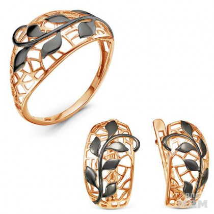 Гарнитур из золочёного серебра с черным родированием р.17,5
