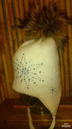 Зимняя шерстяная шапка для девочки. Двойная вязка