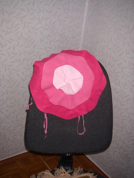 2. Розовая шапка подойдет на 1,5-2 года,может и чуток старше. Огромный помпон!(на фото примят). Сбоку розочки при желании снимаются. Цена 1,500