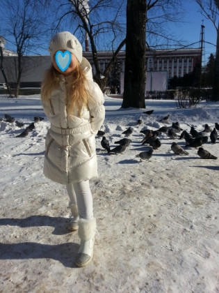 пальто Blumarine и шапочка с вуалькой Petite Sophie