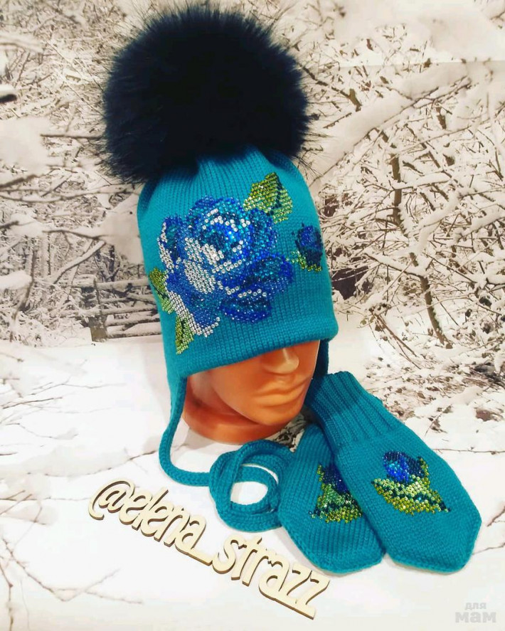 К сожалению, на фото сложно передать игру черных страз и бусин на черном фоне шапочки. Вживую все деликатно сверкает как дождевые капельки