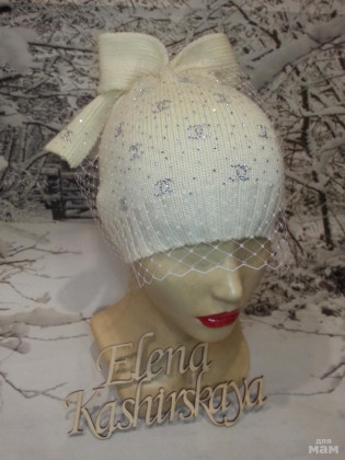 Тоненькая шапочка с вуалью р. 50/52